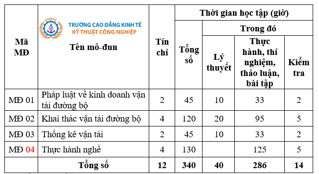 – Bằng cấp sau khi tốt nghiệp:Chứng chỉ sơ cấp vận tải